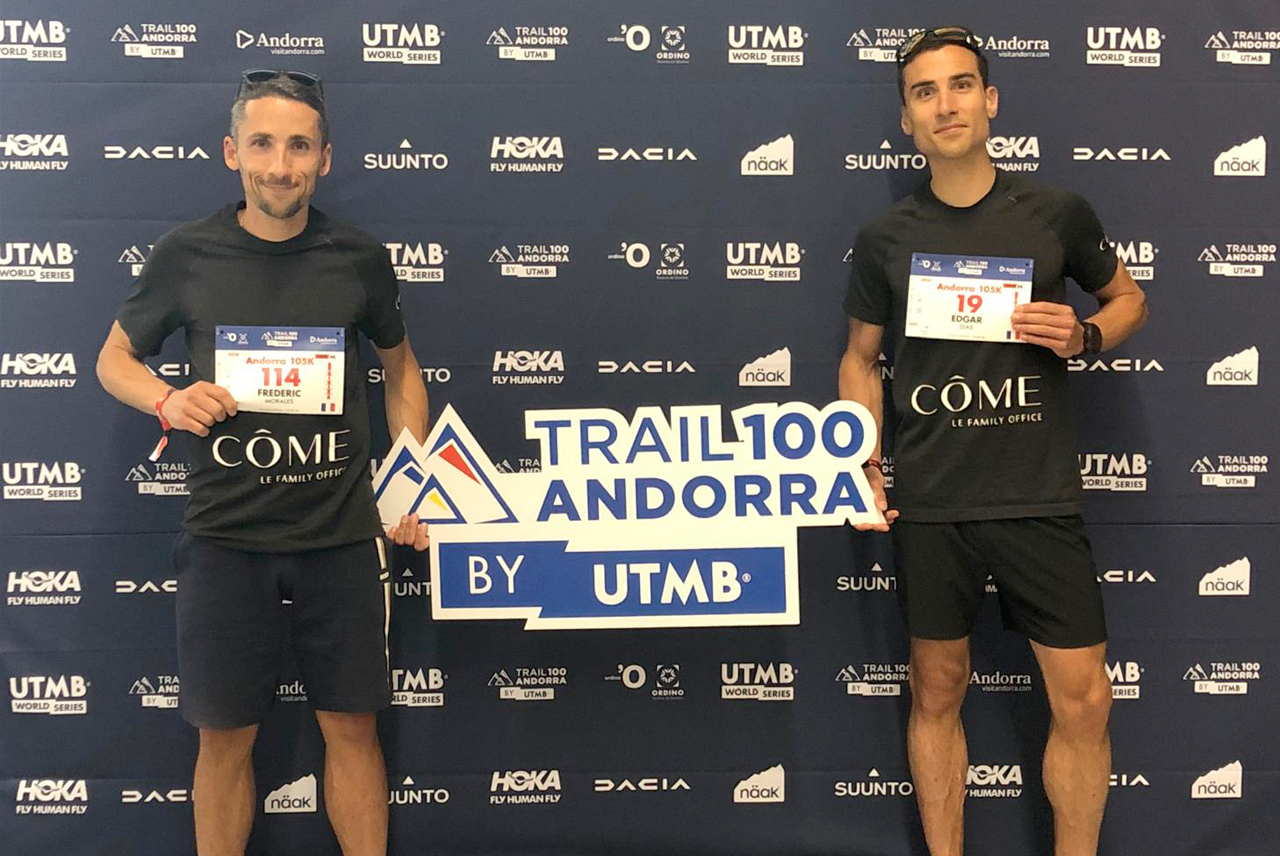 Le dernier et le plus récent, fut mon résultat sur un trail majeur du circuit mondial – le 110km d’Andorre by UTMB permettant aux meilleurs de la discipline de se qualifier pour la grande finale à Chamonix ! Il ne fallait pas s’attendre à ce que je prenne un départ canon et fasse la course en tête. L’objectif était de savoir composer avec les sensations du moment, de remettre doucement le corps dans des schémas de course longue et de préparer au mieux l’UTMB en août. Petit détail, la veille du départ, le kit Grand Froid a été activé. Le parcours a été légèrement diminué, 106,7 km et 6.375m de dénivelé positif, à cause de la météo et de la neige de ce printemps étrange. Partis dans la nuit, j’ai entamé mon voyage à la lueur des frontales, puis j’ai pu apprécier le lever de soleil au cœur des montagnes. Avec ce plaisir toujours de voyager, l’ultra, c’est passer des heures dehors, lever la tête et savoir apprécier les paysages qui s’offrent à nous. Au final, je décroche une 7ème place , en compagnie de grands noms de la discipline, me permettant d’être directement qualifié pour l’UTMB 2025, l’émotion est forte. À ce moment, je pense à Frédéric (Morales) et à ma compagne Alice toujours en course. Quelle surprise de les savoir ensemble pour terminer les derniers kilomètres exigeants et m’empresse ainsi de les rejoindre sur le parcours pour les encourager et partager l’émotion d’une deuxième arrivée avec eux, à Ordino.