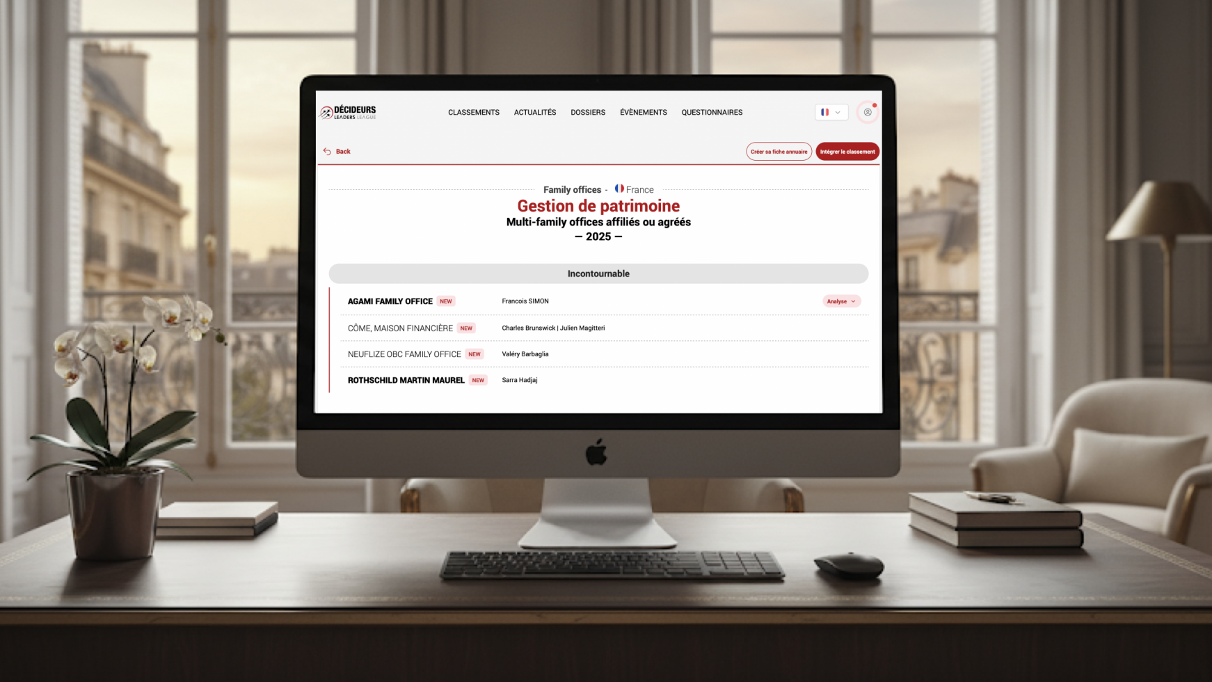 Côme Maison Financière est fière d’annoncer son entrée dans la catégorie la plus prestigieuse, « Incontournable », du classement Décideurs Magazine & Leaders League des meilleurs family offices français affiliés ou agréés.